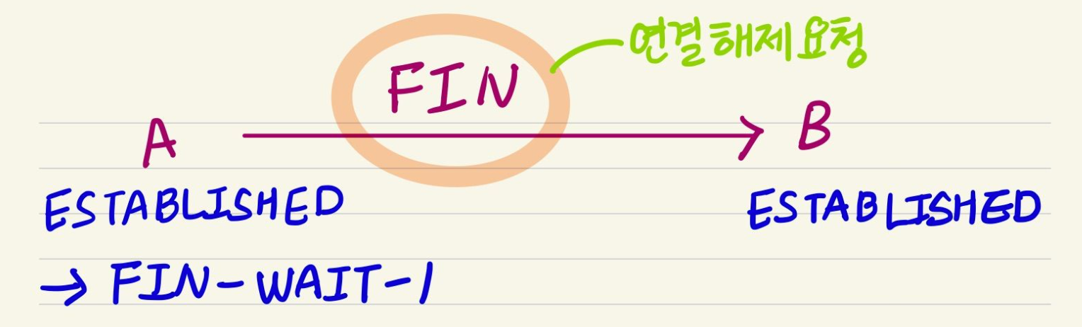 클라이언트 A는 서버 B에게 연결 해제 요청을 하기위해 FIN 플래그가 설정된 패킷을 보낸다.