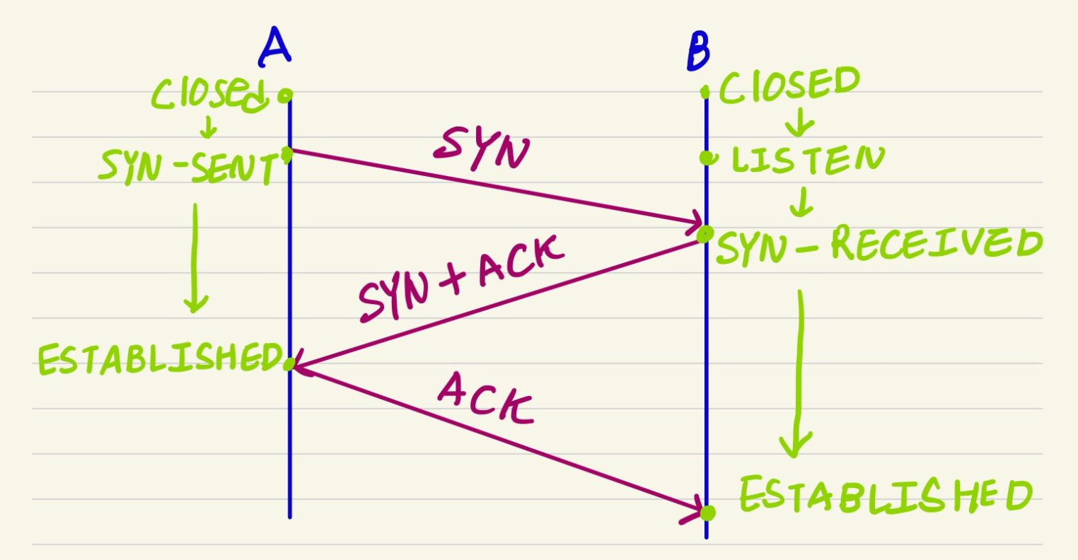 TCP는 서버와 클라이언트 사이에 데이터를 전송하기 위해 데이터 전송 전 서로의 연결을 3가지 단계를 이용해 성립시킨다.