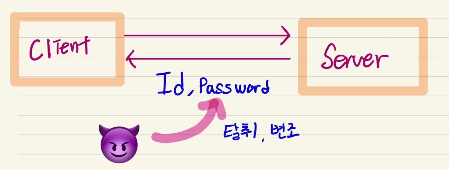 - 아이디, 비밀번호와 같이 민감한 정보를 보내는 경우 제 3자가 해당 데이터를 탈취한다면 문제가 발생한다.