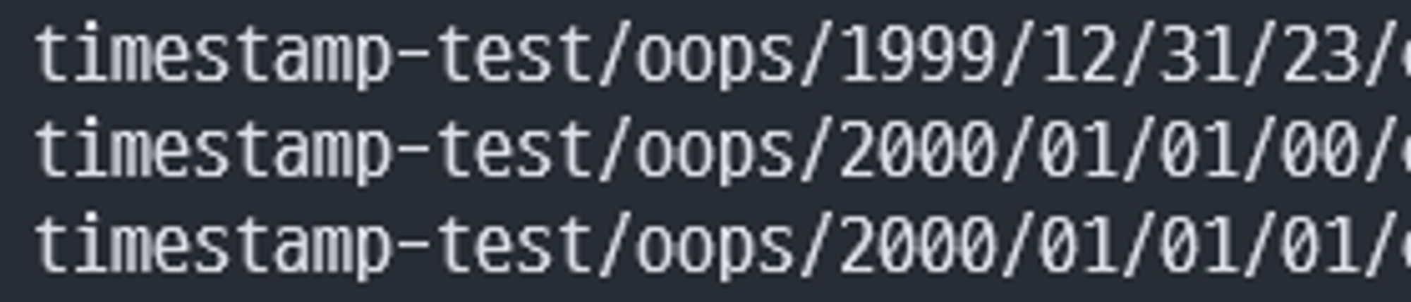 - Record Header Timestamp 범위: 1999-12-31T23:59:59.999Z ~ 2000-01-01T01:00:00.000Z
